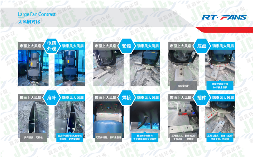 工业大风扇相比我们平时用的风扇技术更先进,采用的都是环保节能的元件进行组合,因此用户在选择时需着重了解好工业大风扇厂家的相关技术。现在市面上的工业大风扇多为单底盘结构,为了安全着想,我们瑞泰风工业大风扇采取的是双底盘360°安全防护。更多详情看图片